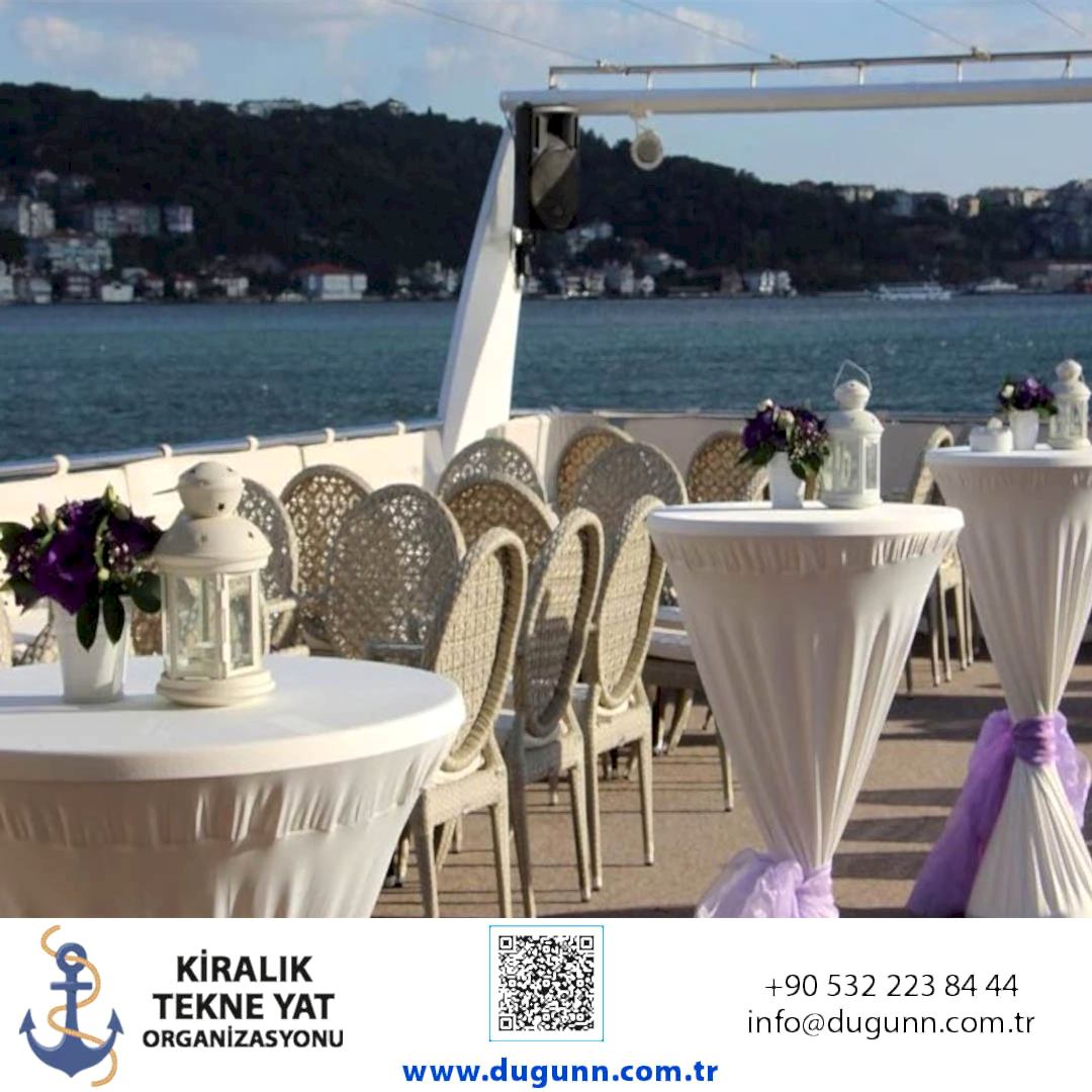 Teknede düğün,davetiye, şirket organizasyonları, nişan, nikah sonrası ve diğer organizasyonlar için kaliteli hizmetlerimizle söz veriyoruz.