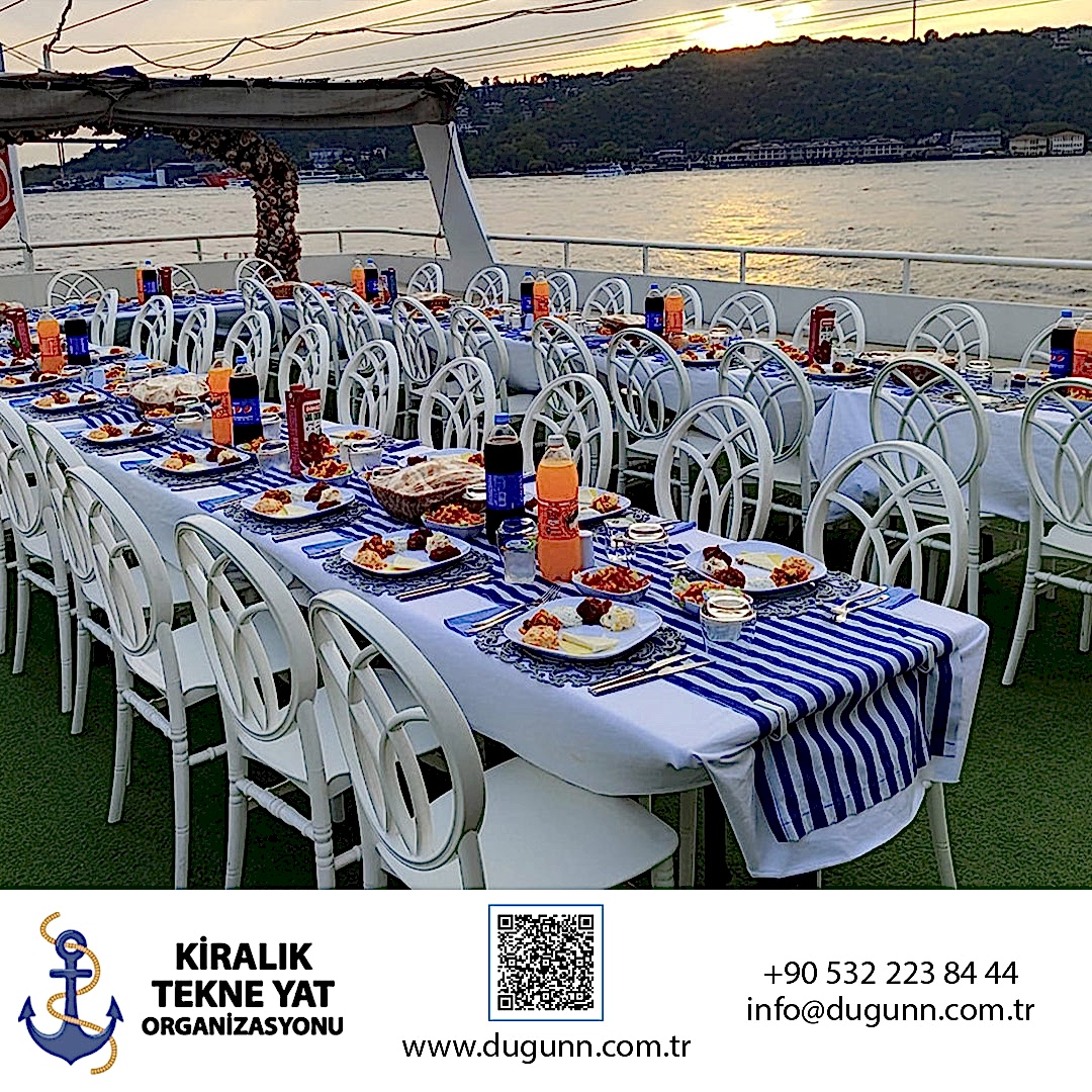 Yemeği Keyifle Kutlayın: Teknede Şirket yemeği günü, katılımcılarınızla keyifli bir zaman geçirmeye odaklanın ve etkinliğin tadını çıkarın.