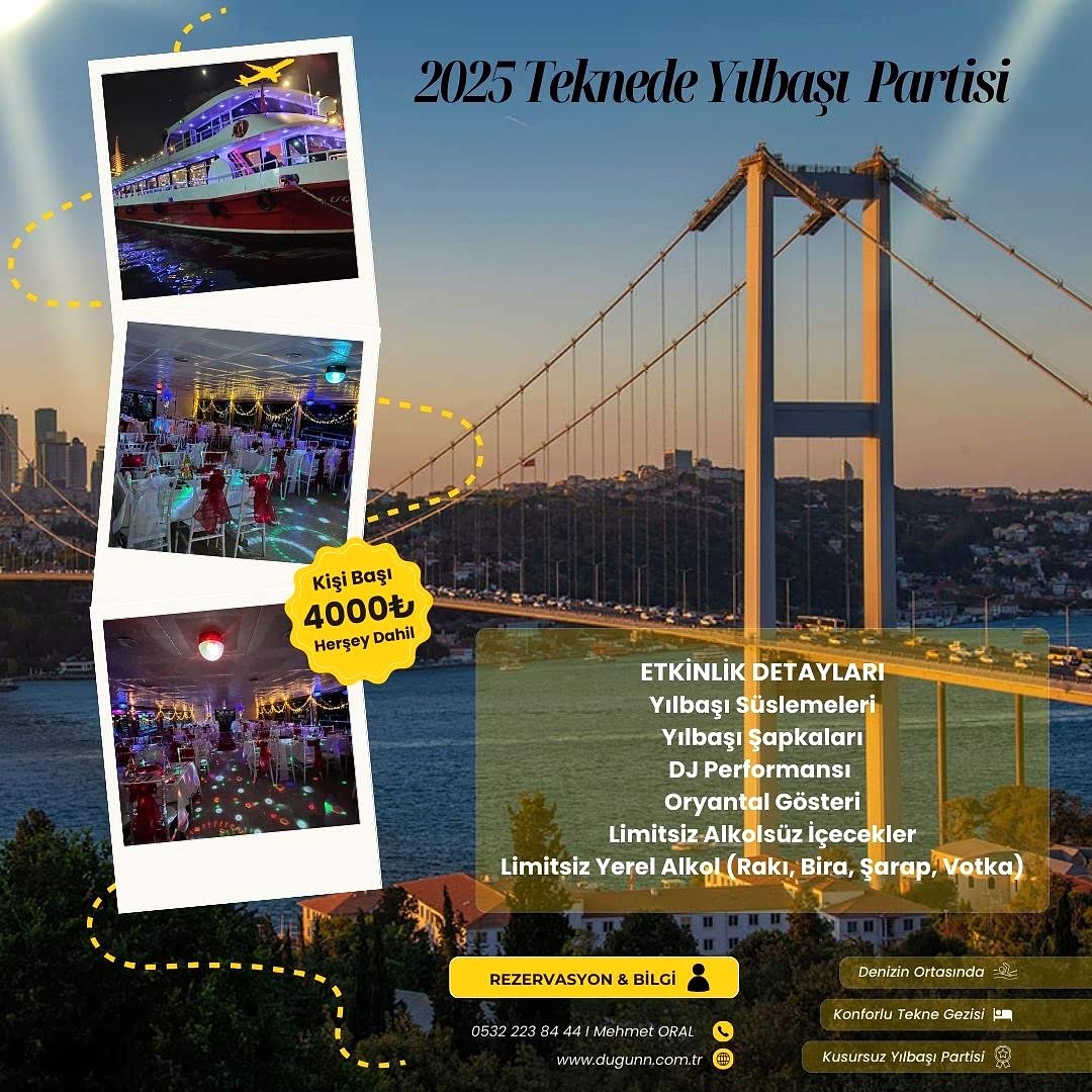Yeni yılı İstanbul'un büyüleyici Boğaz manzarası eşliğinde, Boğaz'da teknede yılbaşı partisi ile karşılamak istiyorsanız bu özel deneyimi kaçırmayın!